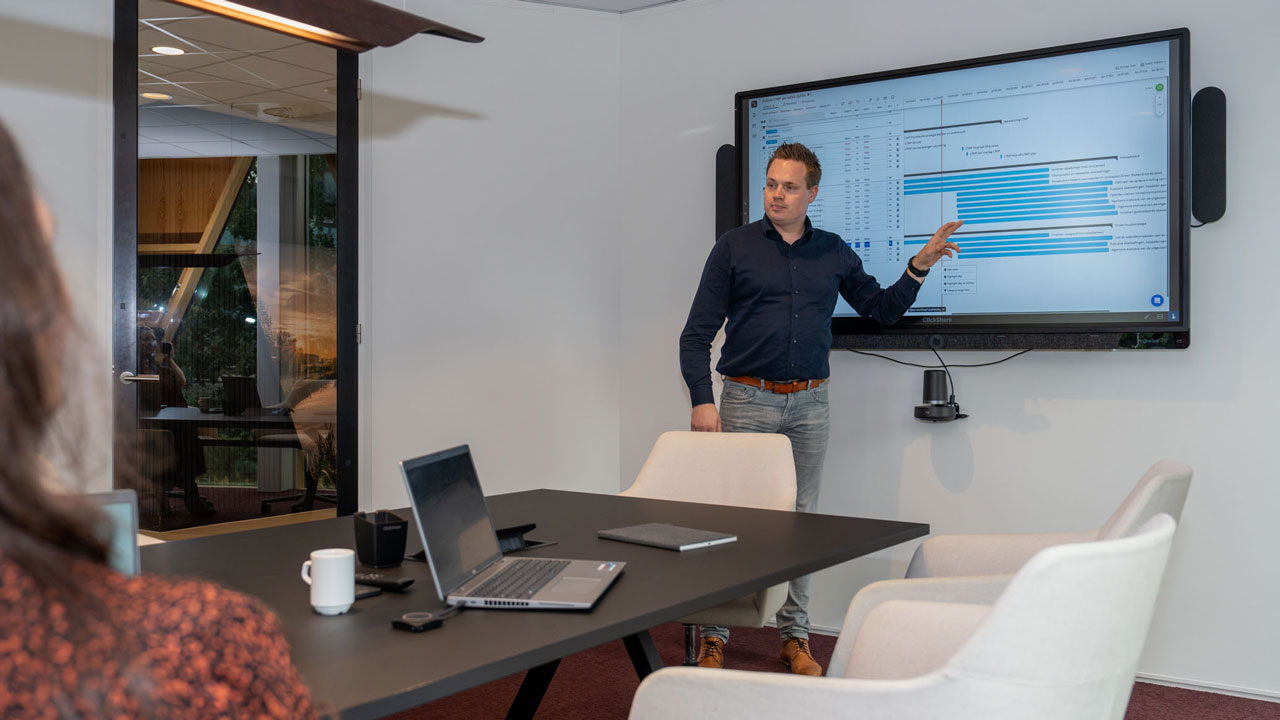 Ons team zorgt dat rapportages en documenten in het totale proces beschikbaar zijn. Op de plek en op het moment wanneer het in het project beschikbaar moet zijn. Dit doen we met gecentraliseerde documentbeheer en workflowtools. Zo geven we real-time informatie weer in dashboards. Daarmee hebben alle interne en externe betrokkenen toegang tot de meest recente gegevens en voortgangsinformatie.